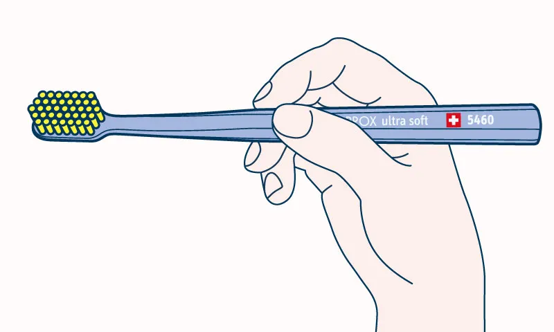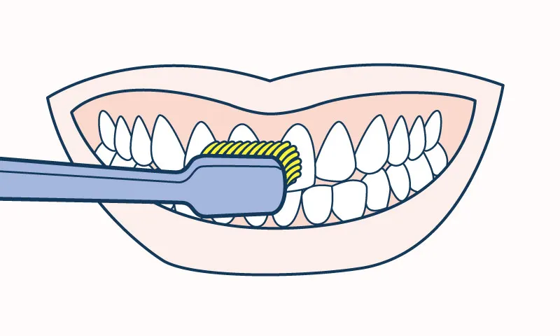 Start with the most difficult places – the inside of the teeth and the back molars, continue on the outside, finish with the chewing surfaces.