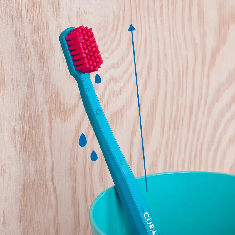 It is important to rinse your toothbrush after every use under a stream of water and leave it to dry in the upright position.