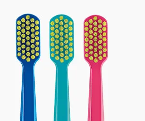 The filaments of the CS single are stiffer than the filaments in our other toothbrushes. Carefully place the outer bristles of the tuft head so they only just enter the gumline. As you carefully clean, tooth-by-tooth, the filaments fan up and clean in the gumline.